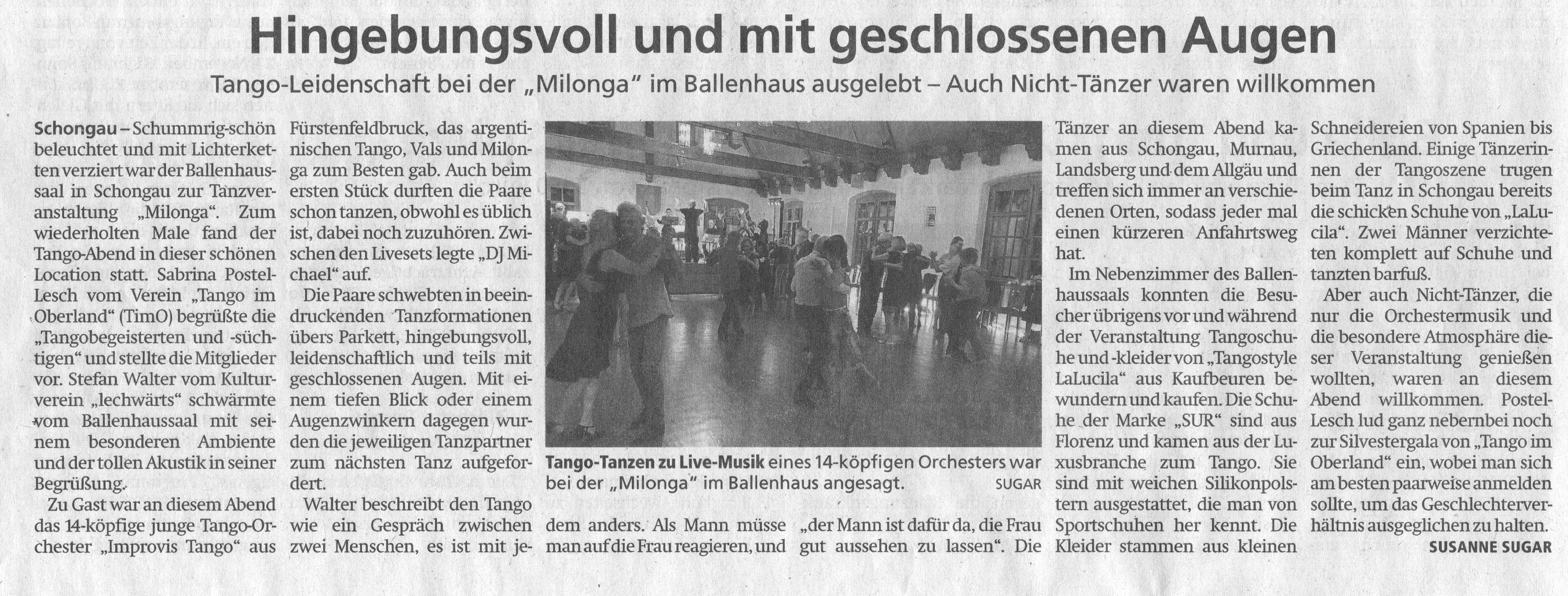 Konzertartikel Schongauer Nachrichten vom letztjährigen Tango-Abend >>>